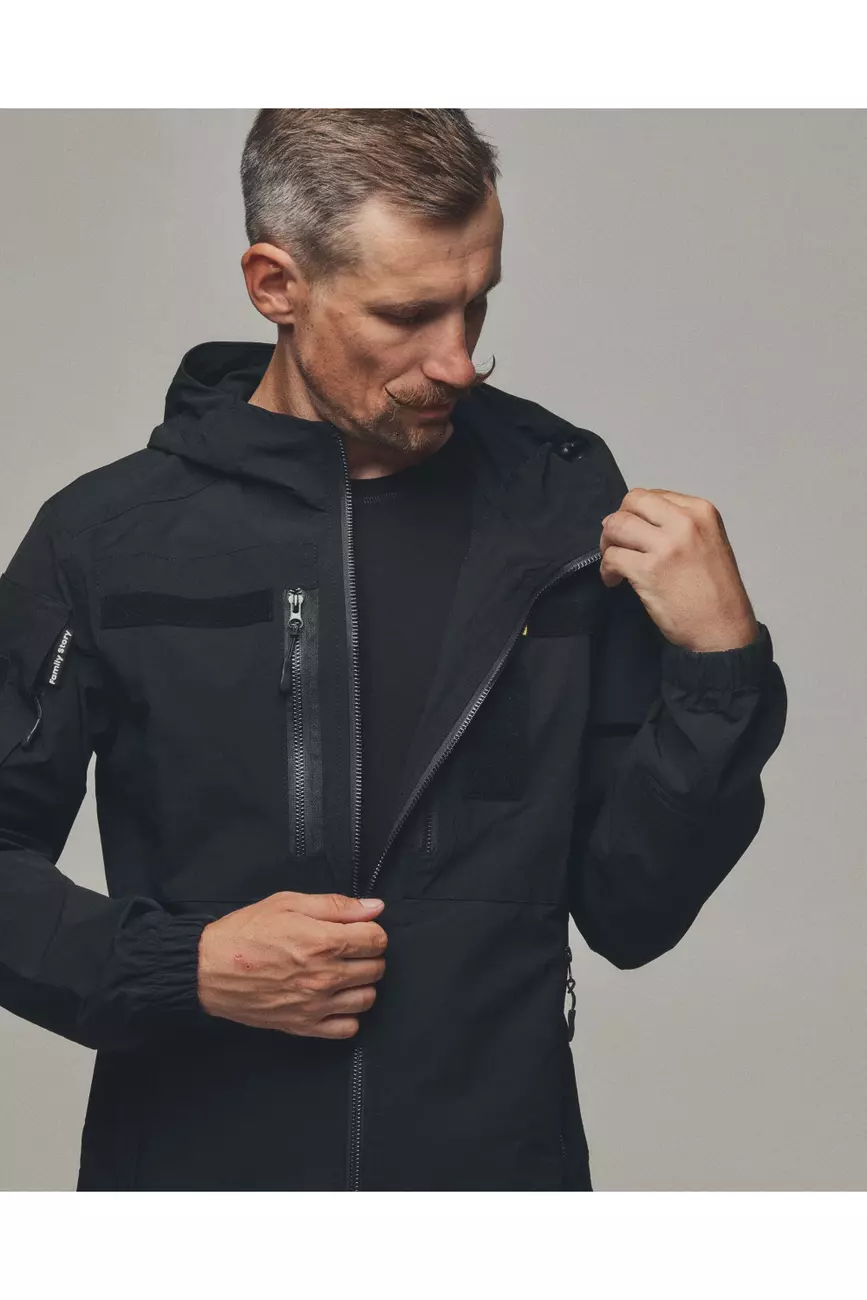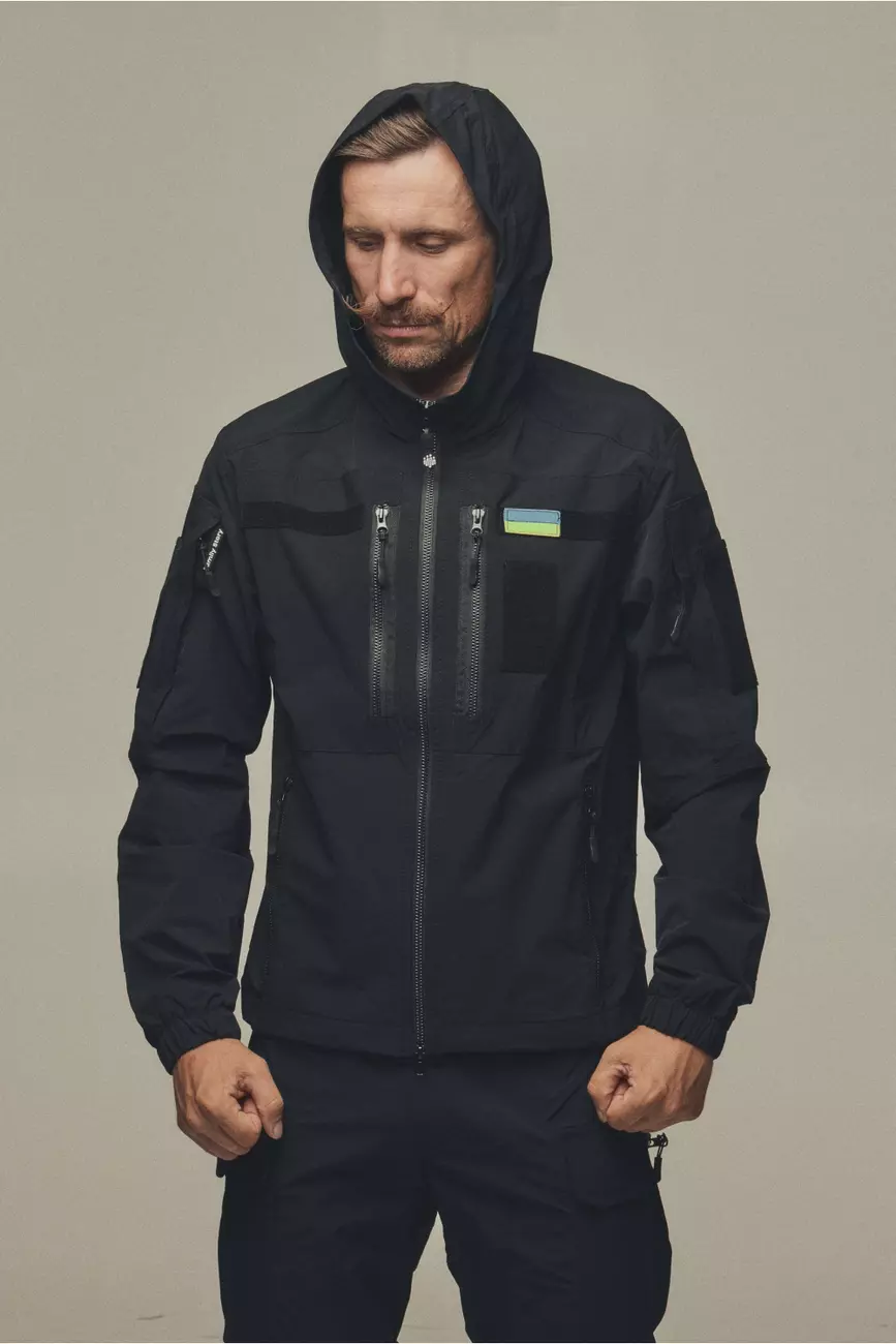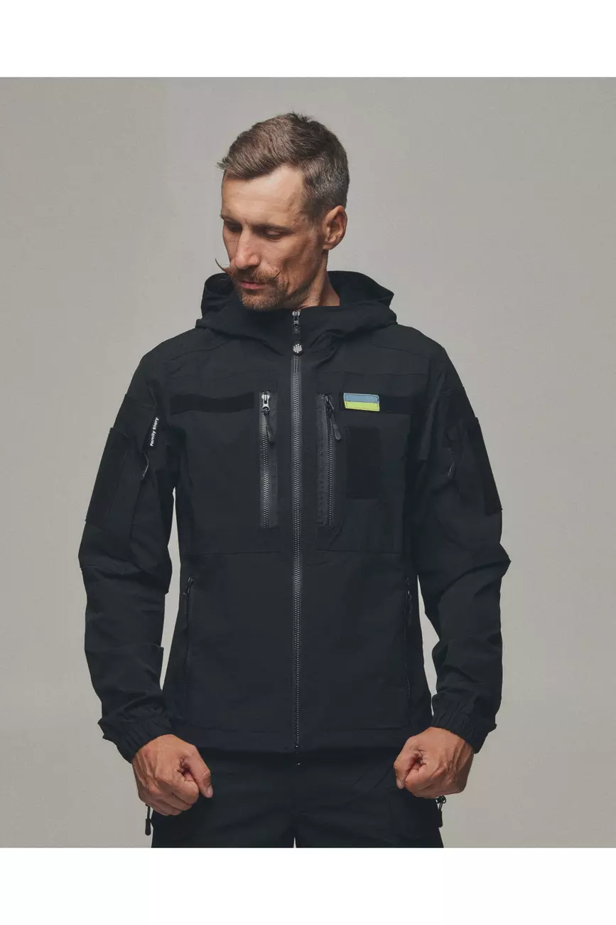 Куртка яка розтягується та не сковує рухи, не пропускає вологу та одночасно дихає. Куртка має 6 кишень, капюшон, шеврони, на манжеті гумка для щільного прилягання та провітрювані кишені з сіткою під пахвами якщо треба знизити температуру після навантаження. Якісна фурнітура та тканина рівня ТОП робить цей виріб унікальним при використані та майже не має аналогів!