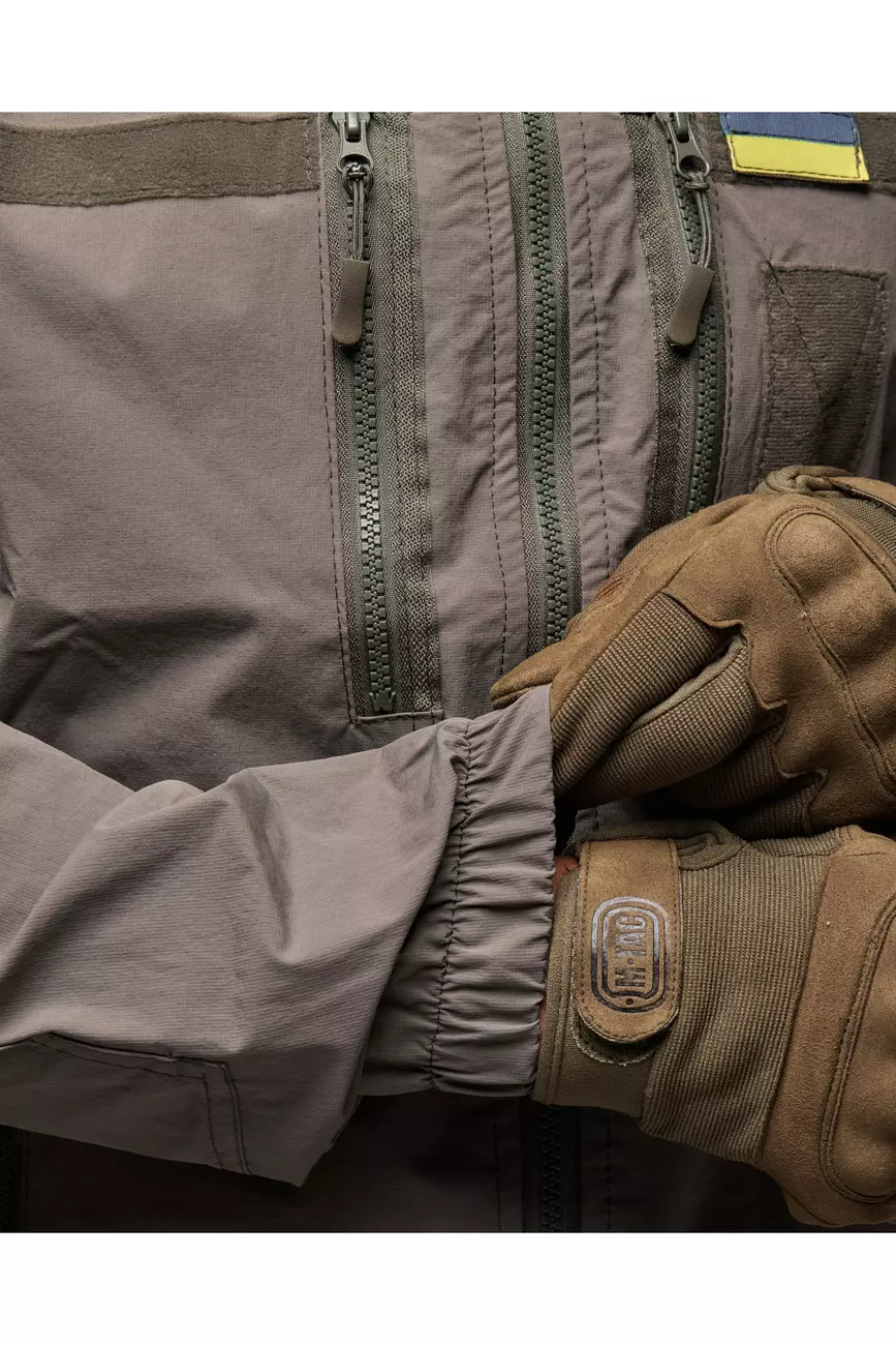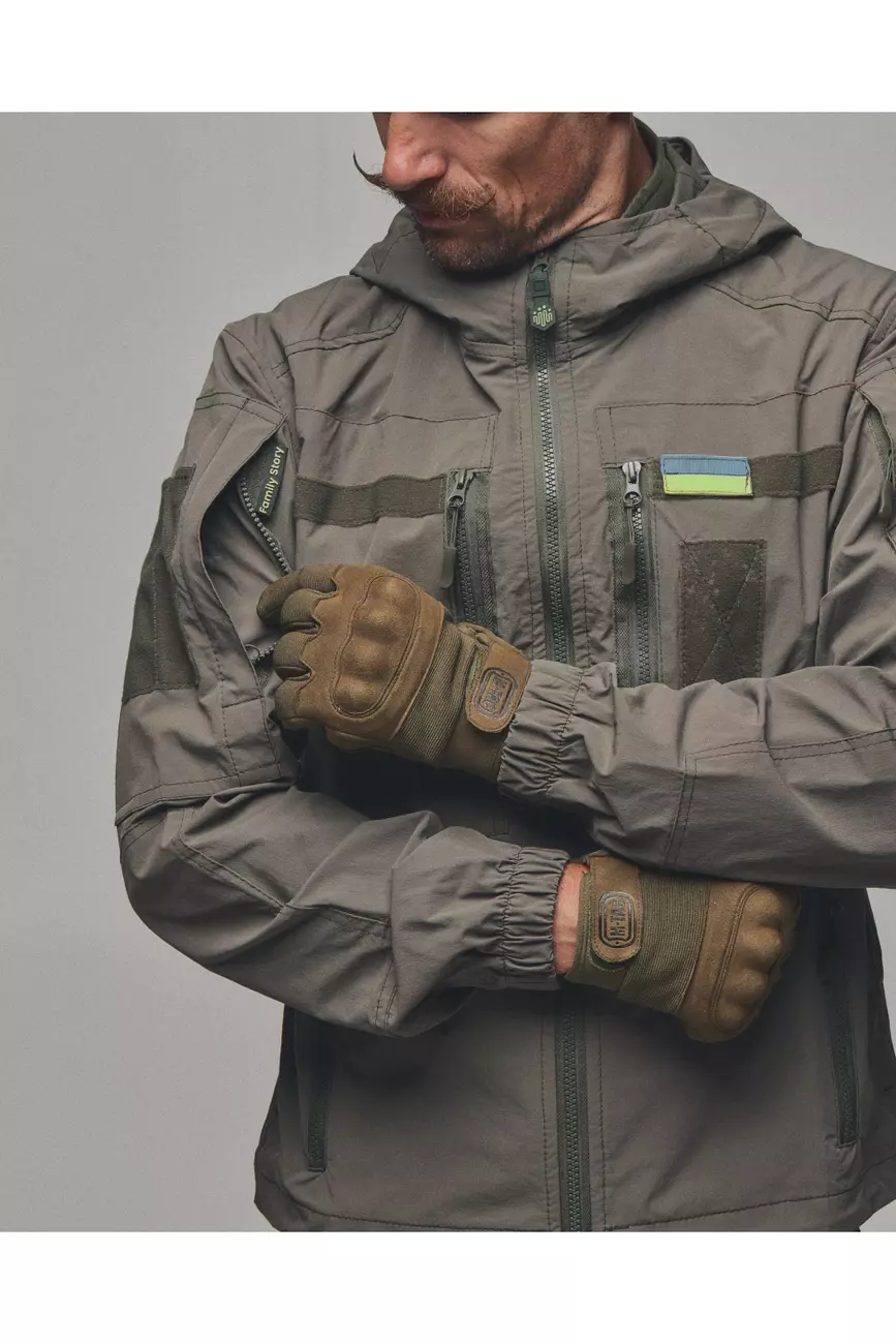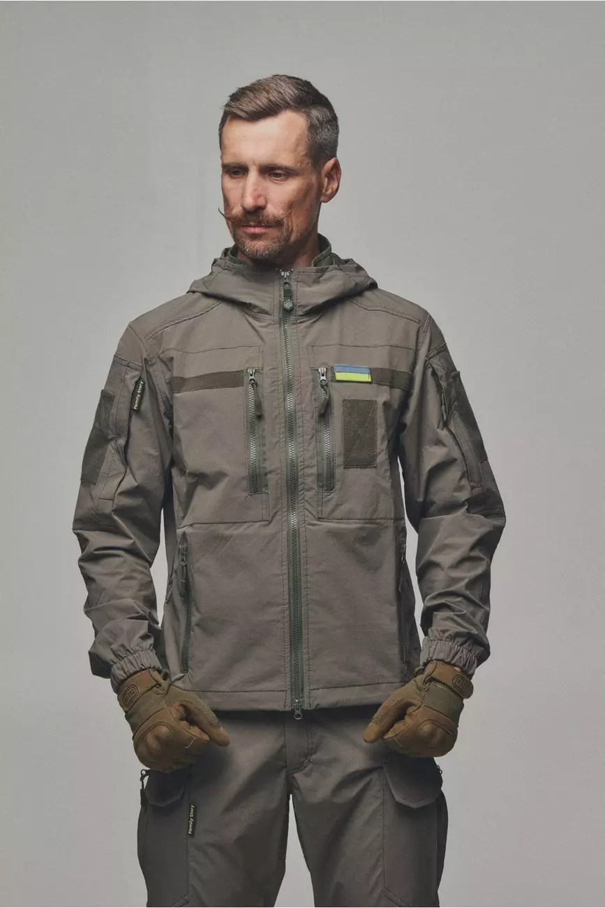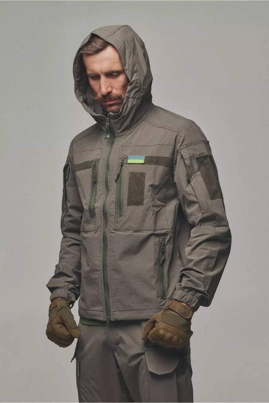 Куртка яка розтягується та не сковує рухи, не пропускає вологу та одночасно дихає. Куртка має 6 кишень, капюшон, шеврони, на манжеті гумка для щільного прилягання та провітрювані кишені з сіткою під пахвами якщо треба знизити температуру після навантаження. Якісна фурнітура та тканина рівня ТОП робить цей виріб унікальним при використані та майже не має аналогів!